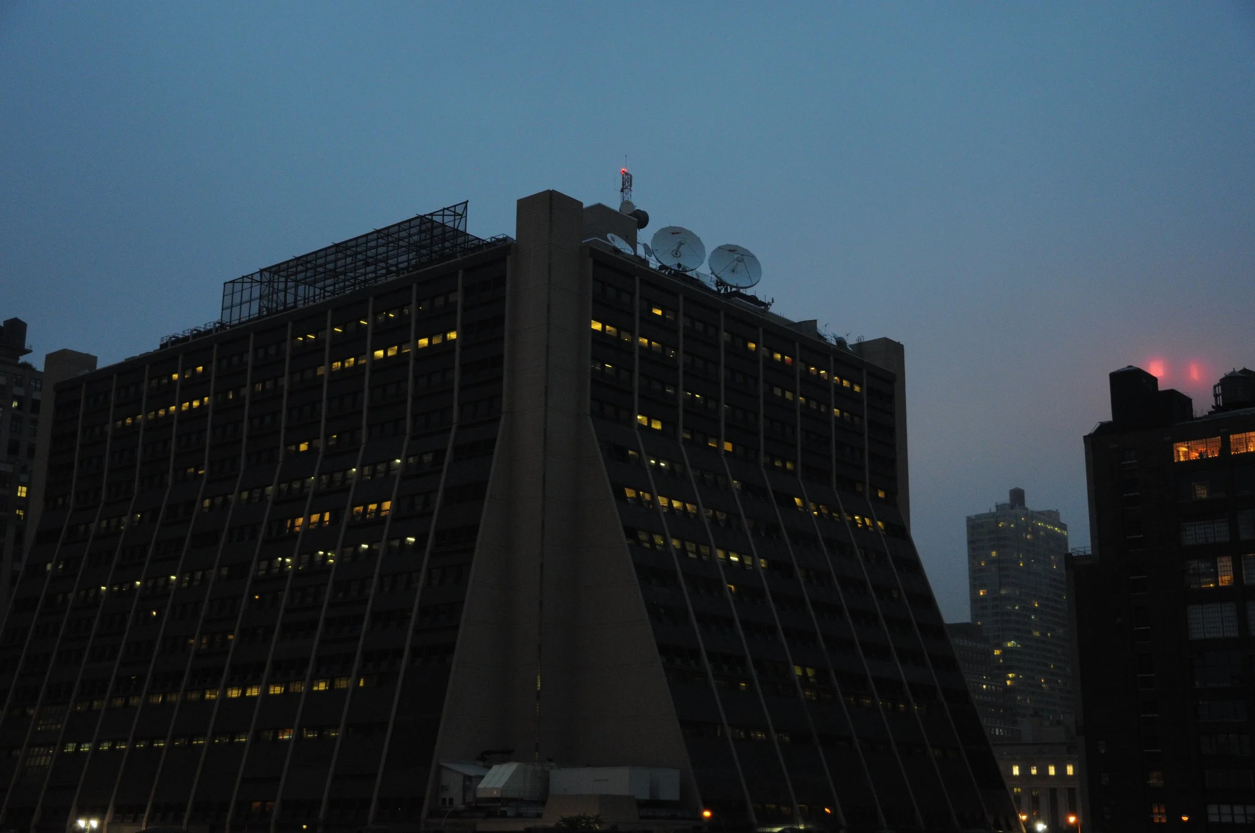 Are we in 2019 Los Angeles? No, we are in Hudson Yards. This was Westyard Distribution Center, now known as Five Manhattan West after the brutalist architecture concrete exterior was replaced with a glass facade in 2017. The Associated Press had their headquarters here until then.